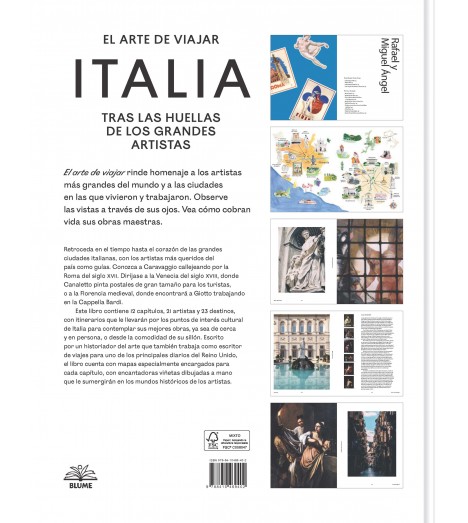 Este libro contiene 12 capítulos, 21 artistas y 23 destinos, con itinerarios que le llevarán por los puntos de interés cultural de Italia para contemplar sus mejores obras, ya sea de cerca y en persona, o desde la comodidad de su sillón.