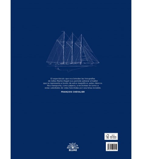 "El espectáculo que nos brindan las fotografías de Gilles Martin-Raget nos permite admirar el ballet que se representa a bordo de estos magníficos yates clásicos. Nos transporta, como pájaros, a revolotear en torno a estas catedrales de velas henchidas por una brisa invisible". François Chevalier