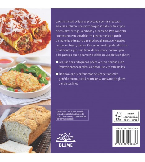 La enfermedad celíaca es provocada por una reacción adversa al gluten, una proteína que se halla en tres tipos de cereales: el trigo, la cebada y el centeno. Para controlar su consumo con seguridad, es preciso cocinar a partir de materias primas, ya que muchos alimentos envasados contienen trigo y gluten. Con estas recetas podrá disfrutar de alimentos que creía fuera de su alcance, como el pan o los pasteles, que no parecen posibles en una dieta sin gluten.