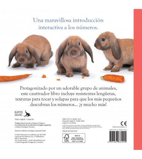 - Protagonizado por un adorable grupo de animales, incluye lengüetas resistentes, texturas para tocar y solapas, para que los más pequeños descubran los números… ¡y mucho más!